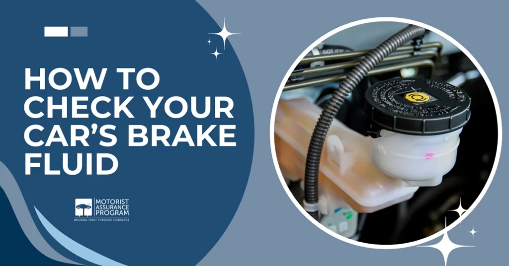 To check your car’s brake fluid, park on a level surface, open the hood (engine off and cool), and locate the translucent brake fluid reservoir